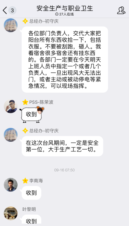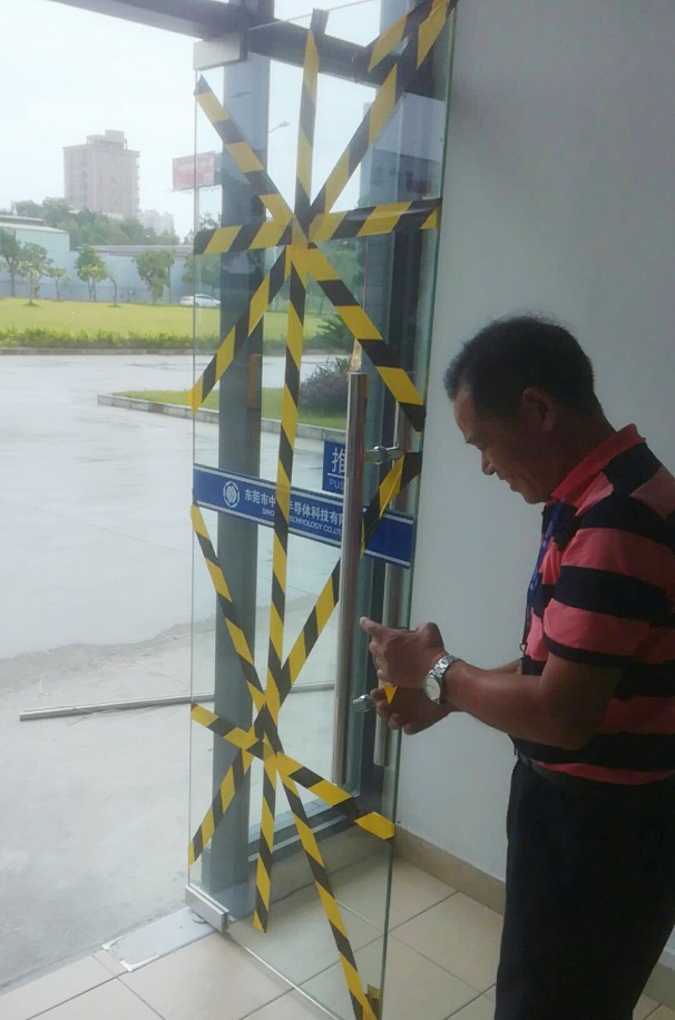 貼米字防強風 二、無懼風雨,全力以赴,有序落實應急指揮機制 公司現(xiàn)場應急小組根據臺風實時變化、政府要求、現(xiàn)場狀況作出決定并發(fā)出指令,小組成員即刻行動、有序落實,保障各項應急工作落實到位。