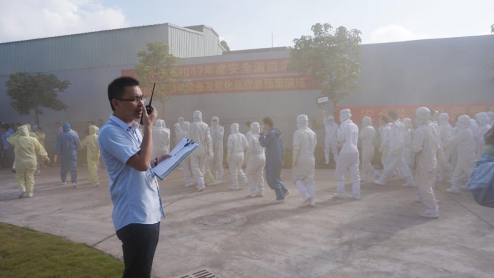 2017年度“安全生產(chǎn)月”消防演習(xí) 特種設(shè)備及危化品應(yīng)急預(yù)案演練來源:中圖科技 發(fā)布時間:2017-09-07 點擊:4915 次為提高全體員工的消防安全意識,檢驗公司消防設(shè)施的功能,增強員工在緊急情況下的應(yīng)變能力,自我防護(hù)能力,使每個員工都懂消防知識,遇到火警、火災(zāi)時知道如何逃生、如何疏散人員、如何進(jìn)行緊急救護(hù)、如何撲滅初期火情,公司于2017年6月23日星期五上午8:10開展了消防演習(xí),在各應(yīng)急小組的密切配合下,分別進(jìn)行了緊急疏散集合、應(yīng)急救護(hù)模擬、初期火災(zāi)撲救、硫酸泄漏應(yīng)急、液氮泄漏應(yīng)急等專項演練。
