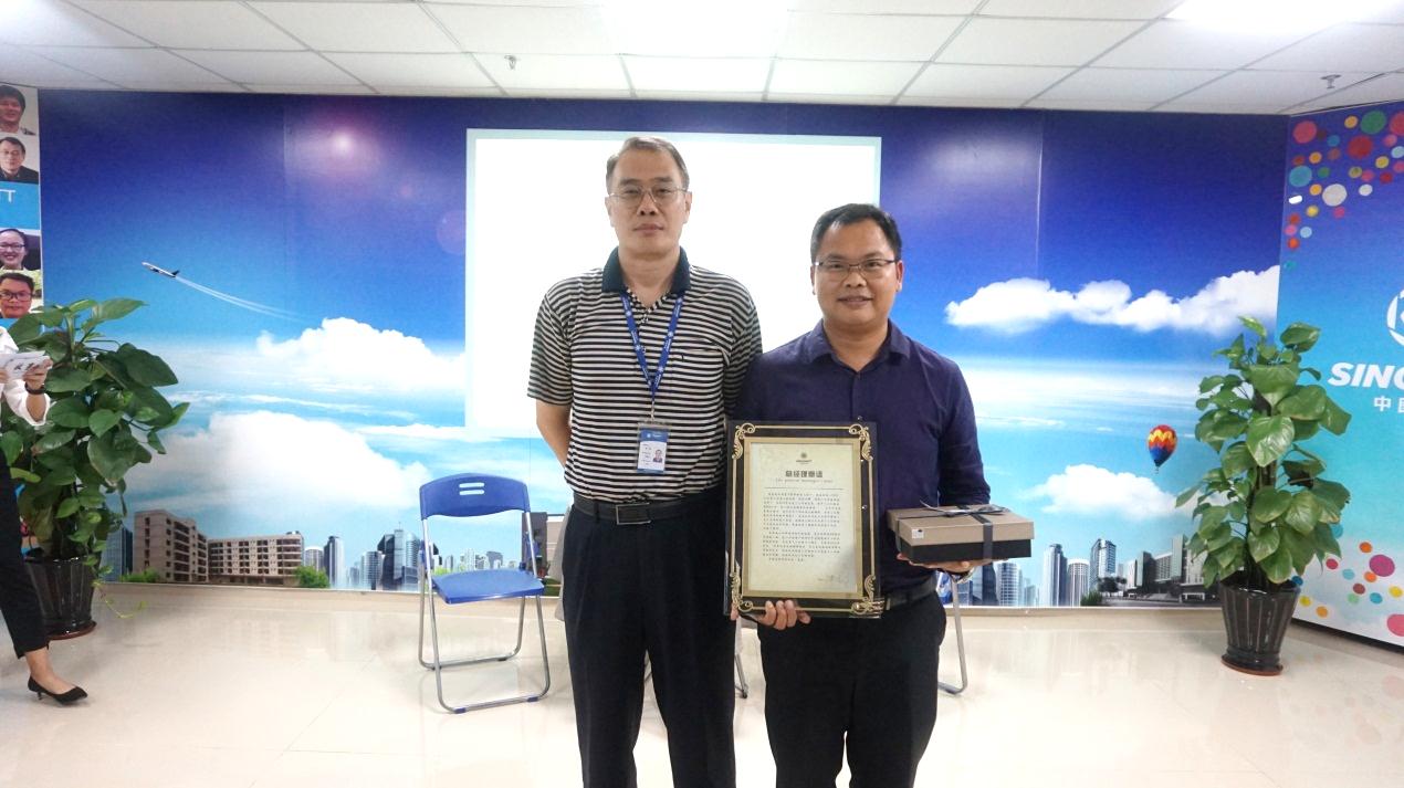 ![]() 總經理寄語: 總經理康凱特意為高聶書寫了一封信,肯定并感謝了高聶這些年來對中圖的付出;康總還現(xiàn)場為他頒發(fā)了特別榮譽,寄語高聶與中圖共同成長!