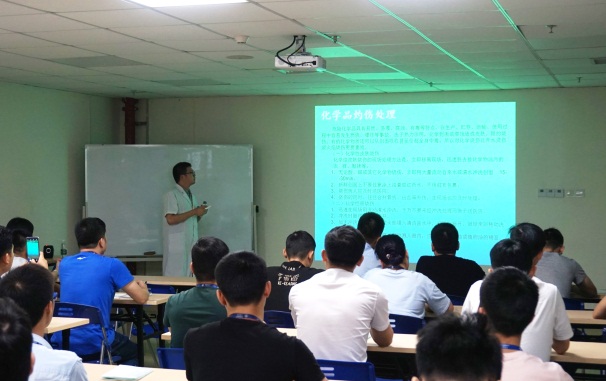 ![]() 此次培訓(xùn)劉醫(yī)生分別從公司所使用到的化學(xué)品、化學(xué)品灼傷救護處理、化學(xué)品泄漏應(yīng)急處理以及特氣泄漏應(yīng)急處理四大方面解讀公司使用危化品的類別和防范措施。