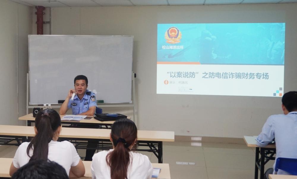 ![]() 培訓(xùn)上,王警官結(jié)合松山湖轄區(qū)內(nèi)的詐騙案件重點(diǎn)介紹了目前常見的詐騙手段,包括冒充公檢法和電信部門、網(wǎng)絡(luò)刷單以及虛假信息詐騙等,讓大家對(duì)電信網(wǎng)絡(luò)詐騙有了更清晰的認(rèn)識(shí)。