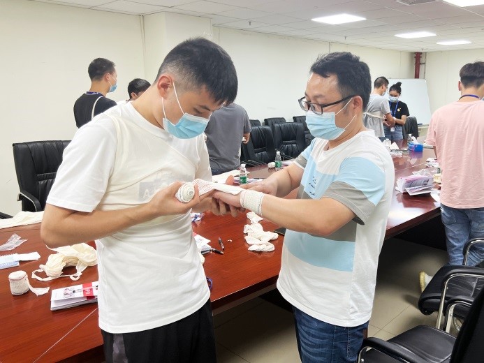 培訓(xùn)中,學(xué)員們專注、認真聽課,積極配合老師互動,并結(jié)合自身工作生活實例踴躍提問,最終22名參訓(xùn)人員均順利通過了急救理論考試和實際操作考試,正式成為公司首批救護人員!除了應(yīng)急救護人員的配備,公司還配備了應(yīng)急救援物資,如急救箱、藥箱、擔架等,以保障員工在突發(fā)緊急情況時能夠及時得到救助。