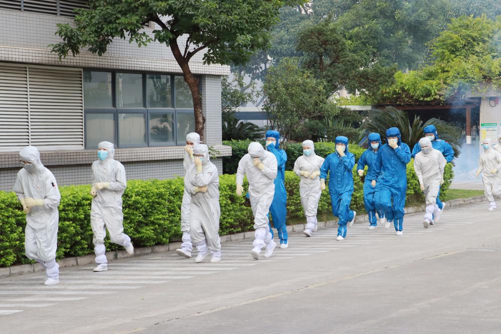 在聽見消防聲光廣播后,所有人員第一時間撤離工作區(qū)域,到集合地點清點人數(shù)。